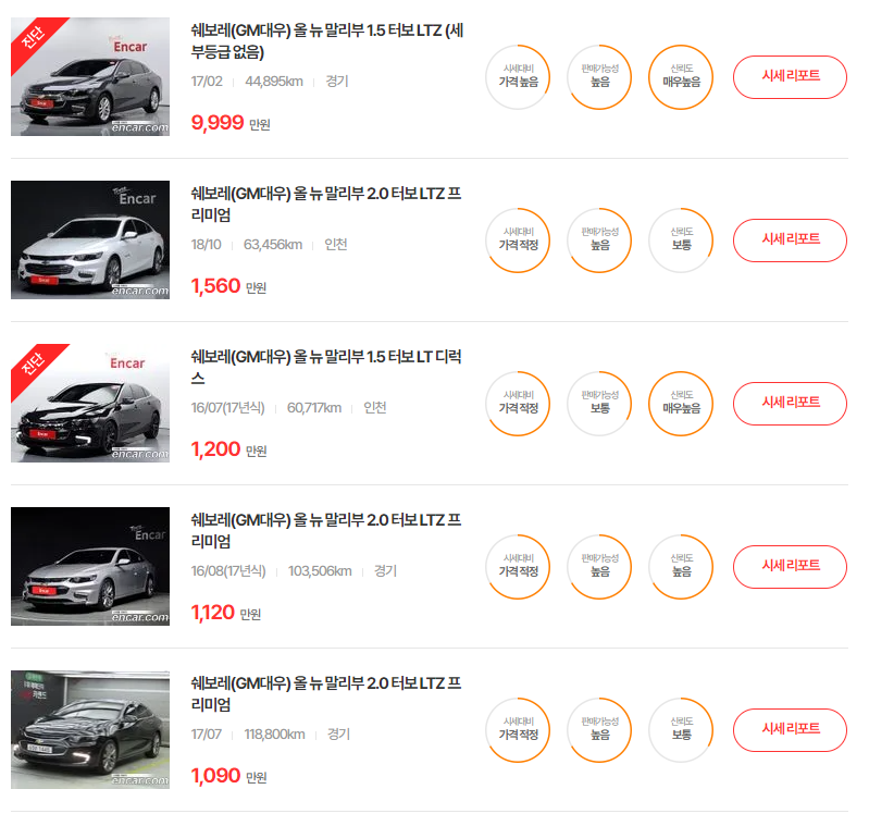 이상으로 오늘은 쉐보레 말리부의 중고차 가격 시세에 대해 자세히 알아보았습니다. 감사합니다.