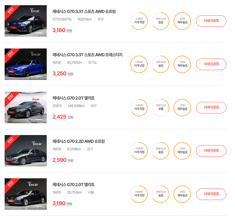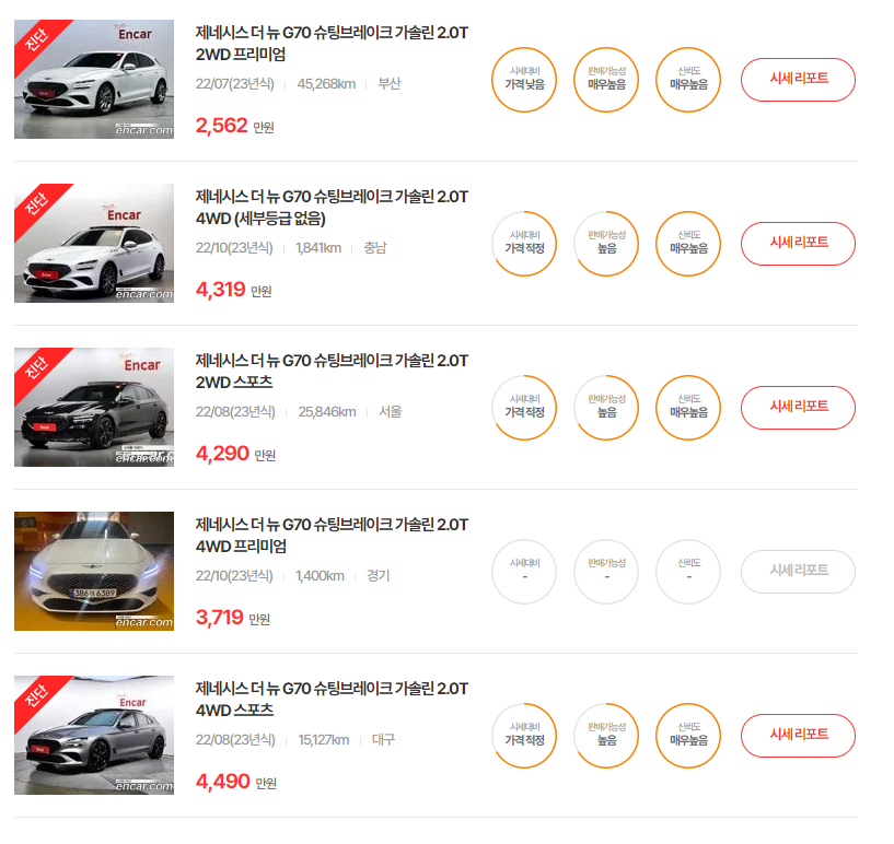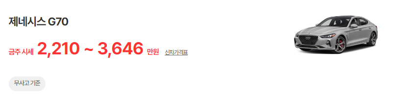23년 연식변경을 거치며 가격대가 더욱 상승해 가장 낮은 트림의 기본 깡통 차량이 4,315만원부터 시작하고 있습니다. 그래서 g70에 관심을 가지고 계시던 분들이 g70 중고차로 눈을 돌리고 있는데요.
