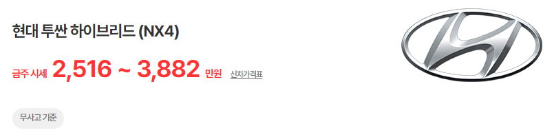 투싼(NX4) 하이브리드(20 ~ 23년) 중고차 시세