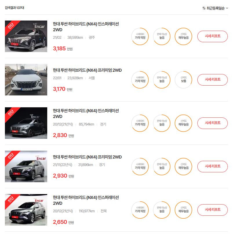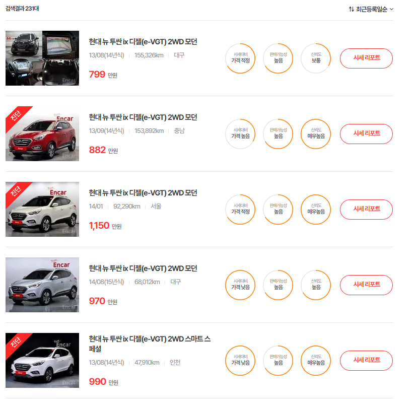 | 싼타페 중고차 가격 시세 | DM, TM, MX5 중고차 시세표 (1) | 2023.09.27 |