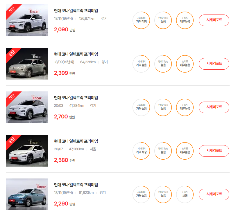 코나 일렉트릭(18 ~ 23년) 중고차 시세