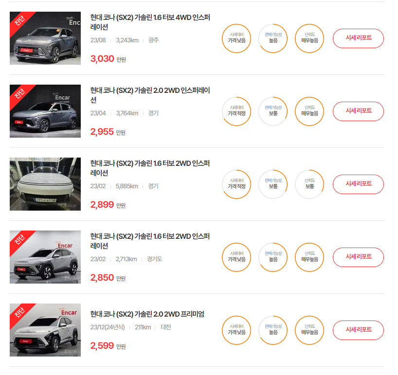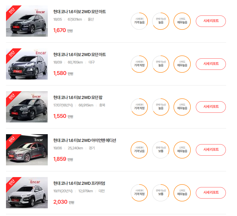 코나 중고차 현황