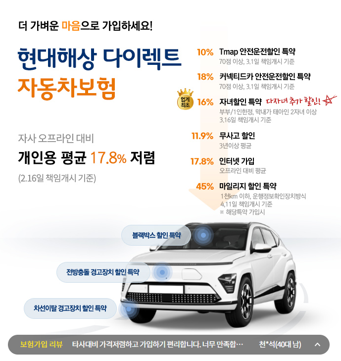 매년 갱신하는 자동차보험 올해는 얼마나 할인 받는지 이리저리 알아보기 상당히 귀찮습니다. 또 어떤 특약이 생겼고, 어떤 특약이 나에게 필요한지 매년 달라져 잘 모르시는 분들이 많은데요.