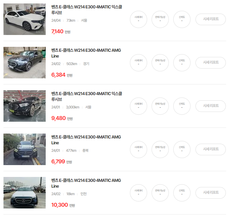 벤츠 E클래스 w214(24년 ~ 현재) 중고차 시세