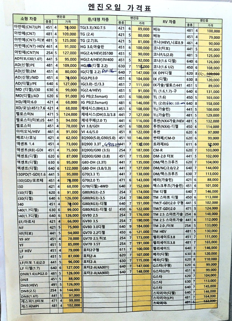 아반떼 엔진오일 교체비용이 10만원을 넘는 시대라니..
