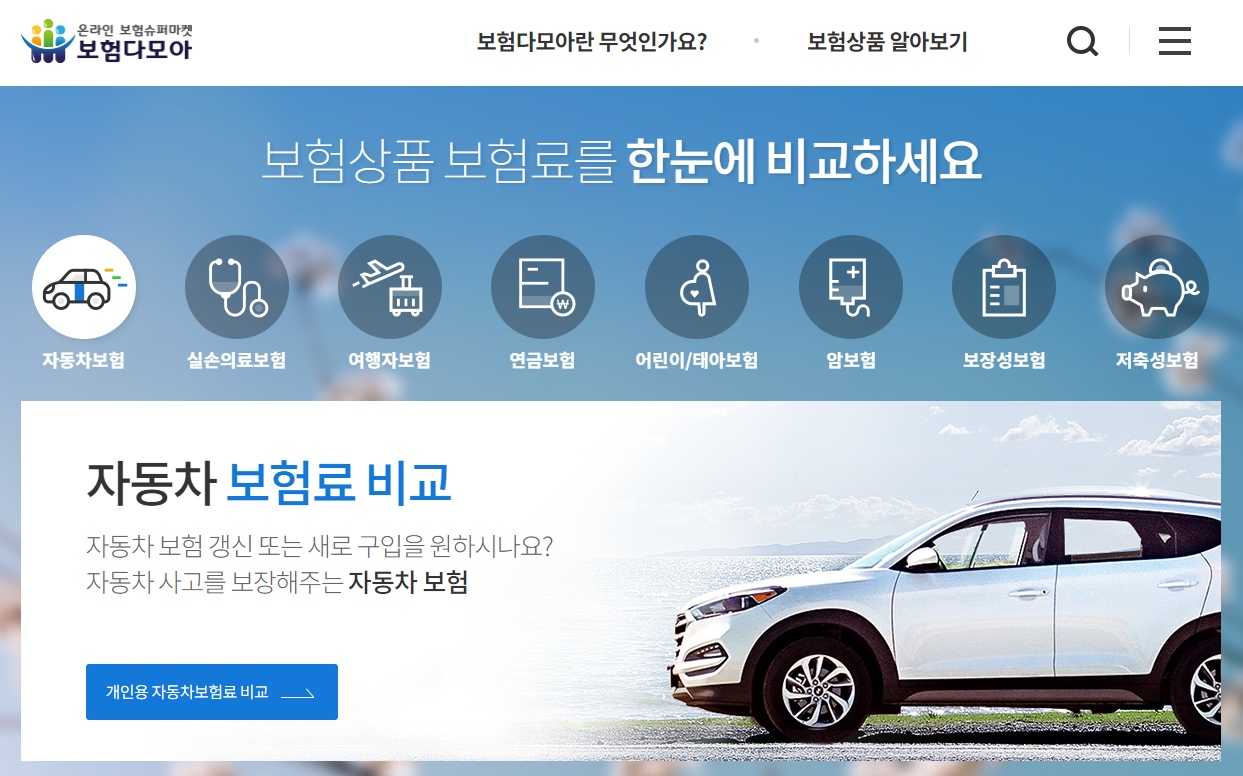 하지만 수 많은 보험사의 웹사이트에 들어가 보험료를 산출하기엔 너무 귀찮습니다. 그래서 우리는 '보험다모아' 사이트를 이용할 겁니다.