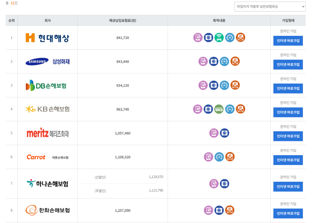 따라서. 자동차보험을 비교하실 때는 다이렉트로 각 보험사별 보험료 견적을 직접 받는 것이 가장 저렴하게 가입하는 방법입니다.