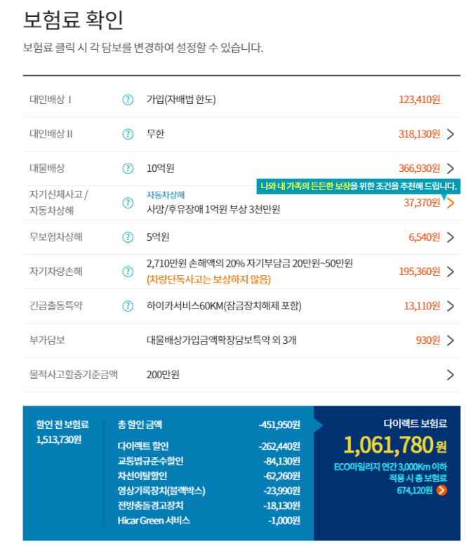 자동차보험을 다이렉트로 가입하시게 되면 각 특약 항목을 선택하셔야 하는데요 크게 대인, 대물, 자차, 자손, 무보험상해, 긴급출동서비스 등이 있습니다.