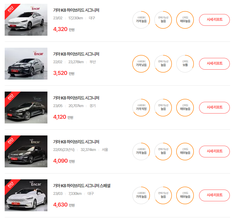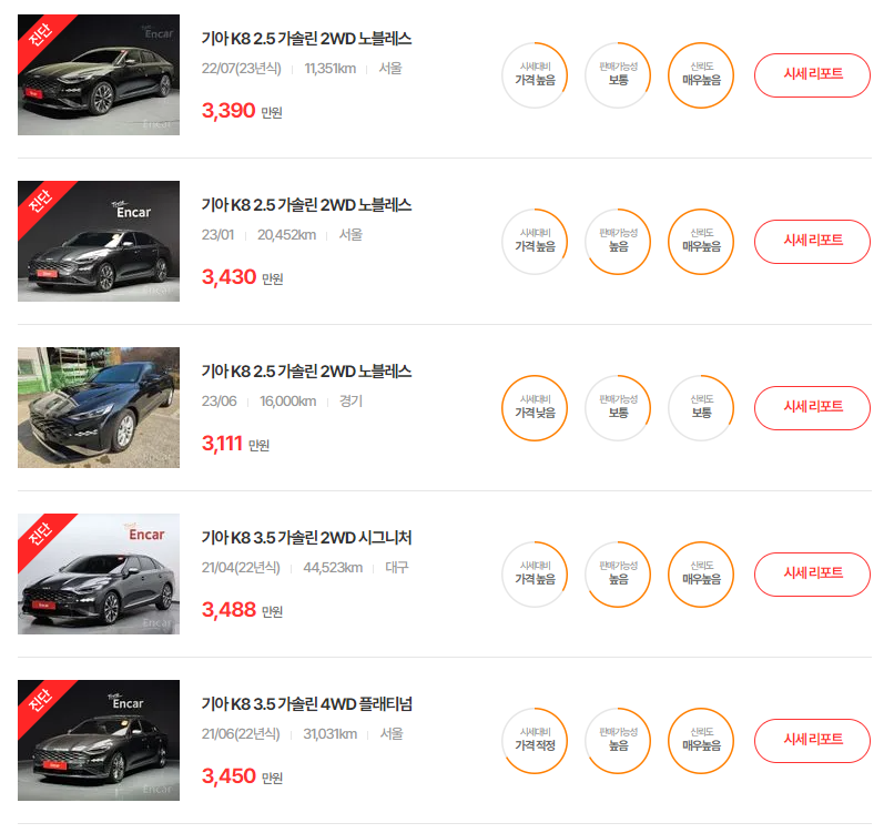 그래서 오늘은 K8의 중고차 가격 시세를 21년식부터 현재까지 자세히 알아보겠습니다.