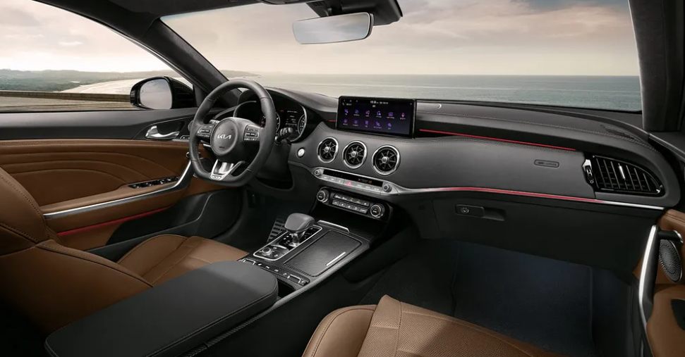 디자인도 매우 훌륭하다는 평이 많은데요. 전면부에는 기아의 시그니처인 타이거 노즈 그릴이 강렬한 인상을 주며, 날렵한 디자인의 LED 헤드램프는 주간주행등과 함께 날카로운 인상을 제공합니다. 전면 범퍼 양쪽에 위치한 대형 공기흡입구는 스포티한 느낌을 강조합니다.