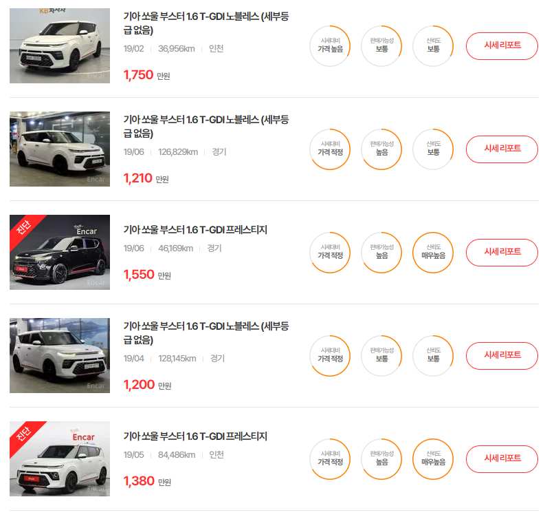 쏘울 부스터(19 ~ 21년) 중고차 시세