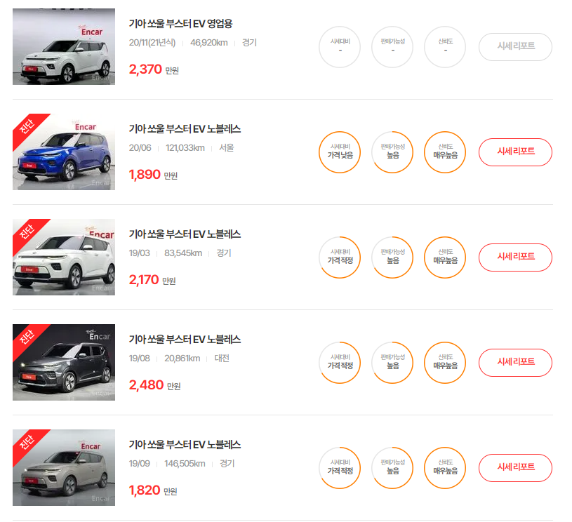 쏘울 부스터 EV(19 ~ 21년) 중고차 시세