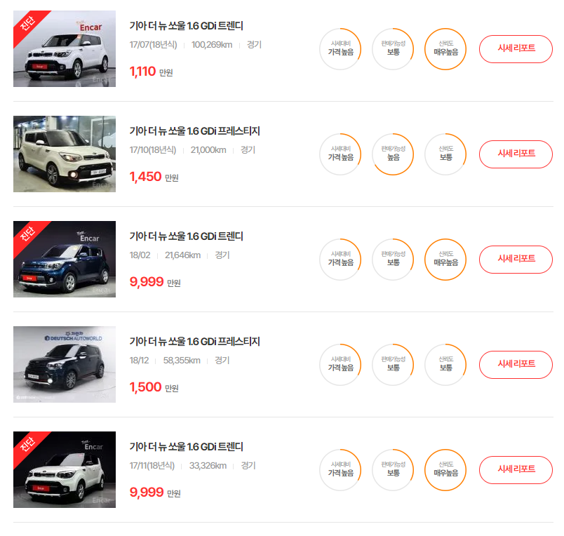 기아 쏘울 중고차 현황