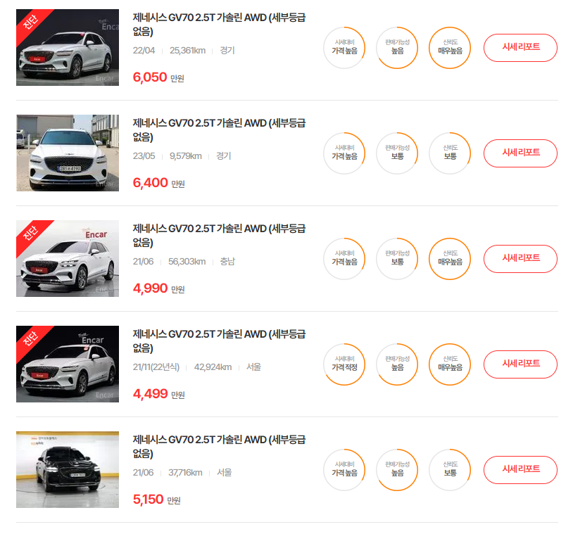 GV70의 인기는 제네시스 브랜드의 고급 SUV 라인업 덕분에 지속적으로 높으며, 특히 2.5 터보 가솔린 모델과 3.5 터보 가솔린 모델이 많은 관심을 받고 있습니다. 가격대는 차량의 상태, 주행 거리, 옵션에 따라 차이가 나지만, 일반적으로 신차 대비 약 10%에서 20% 저렴한 수준입니다.