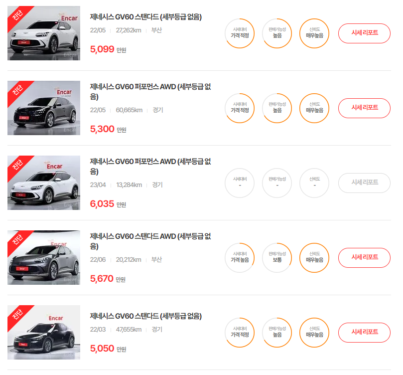 2022년식 GV60은 4,800만 원에서 5,500만 원 사이에서 거래되고 있습니다. 이 모델들도 주행 거리가 짧은 편이며, 다양한 옵션과 기능을 갖추고 있습니다.