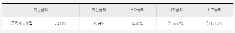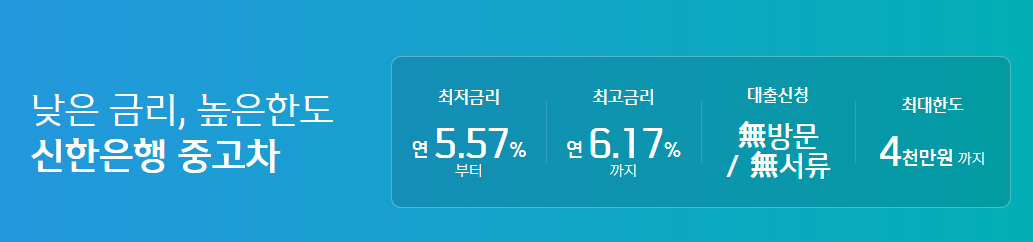 중고차 대출금리 : 연 5.57% ~ 6.17%(2024.07.01 기준)