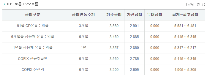 | 연 3.400%(금융채 1년) | 연 0.994% ~ 4.982% |