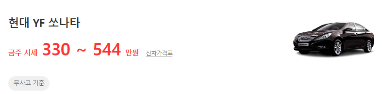 YF 쏘나타의 중고차 가격은 330 ~ 544 만원 입니다. 500만원에 구매할 수 있는 가성비 중고차로 10년이 지난 차량이지만 세련된 디자인과 넓은 실내 공간이 특징입니다. 무난한 걸 좋아하는 우리나라 사람들에게 딱 맞는 뭐하나 빠짐 없는 그냥 무난한 차량입니다.