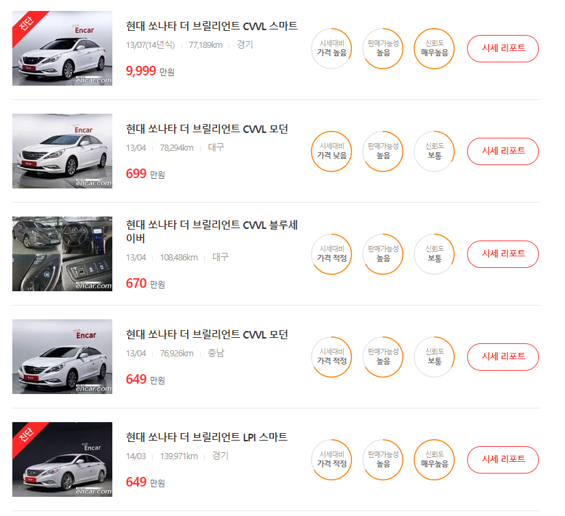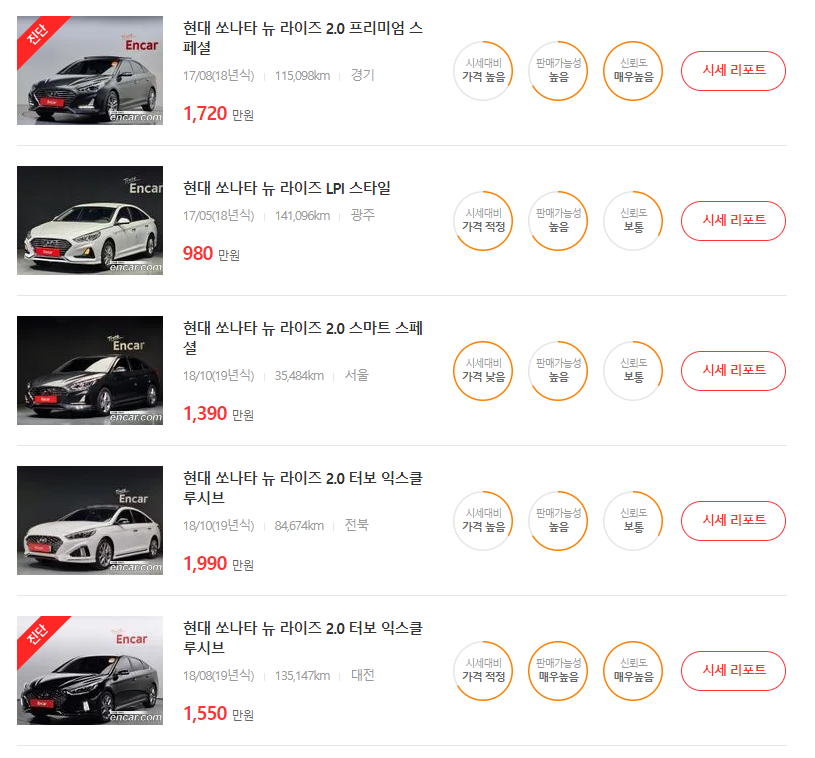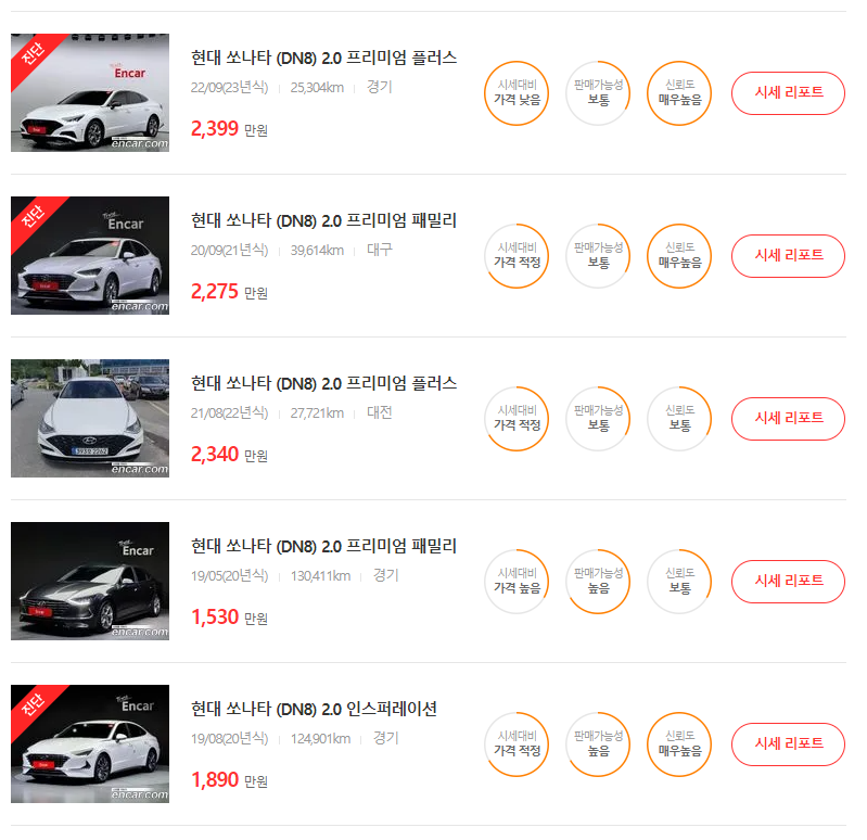 오늘은 쏘나타의 중고차 가격 시세를 모델별, 연식별로 자세히 알려드리겠습니다.