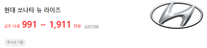 쏘나타 뉴 라이즈(17 ~ 19년) 중고차 시세