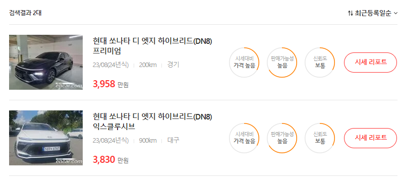 쏘나타 DN8 하이브리드(19 ~ 23년) 중고차 시세