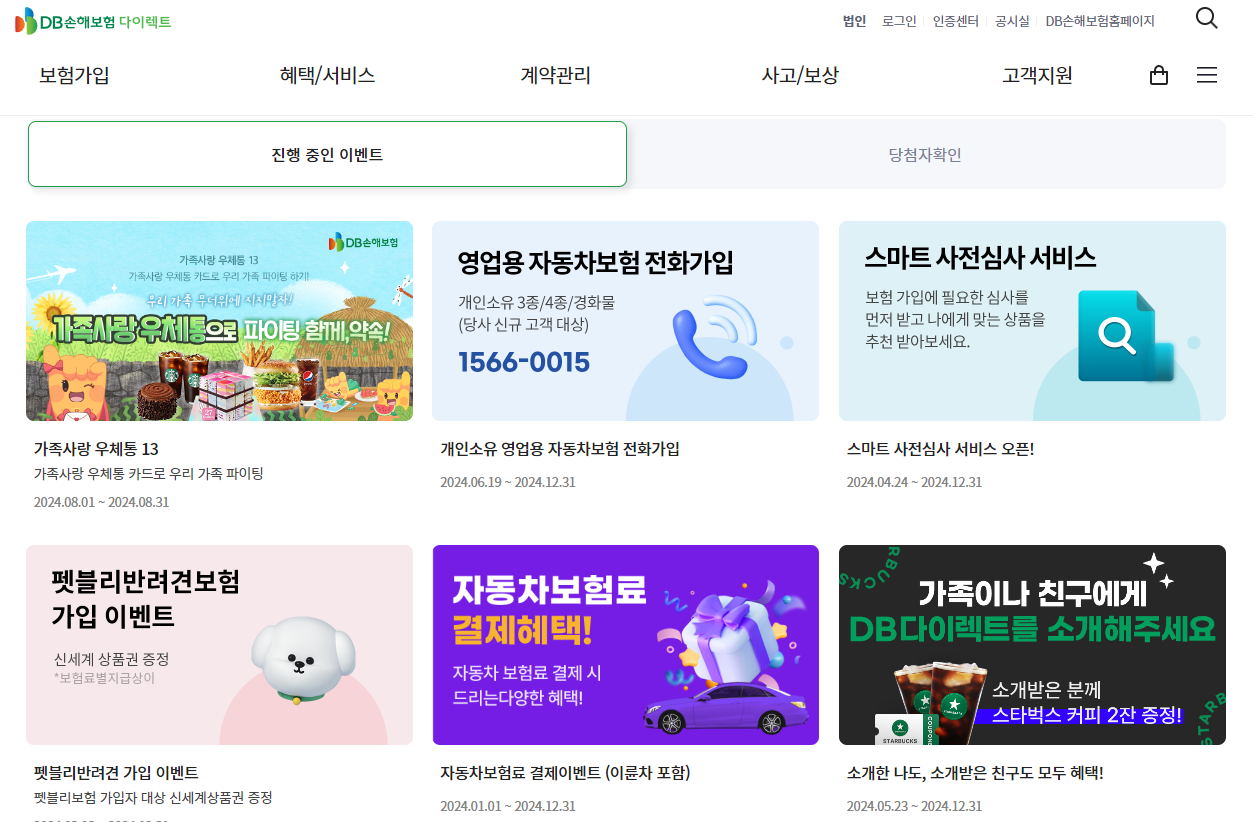 또한, 삼성화재와 동일하게 자동차보험을 소개하면, 스타벅스 커피를 2잔 증정하는 이벤트도 진행하고 있습니다.