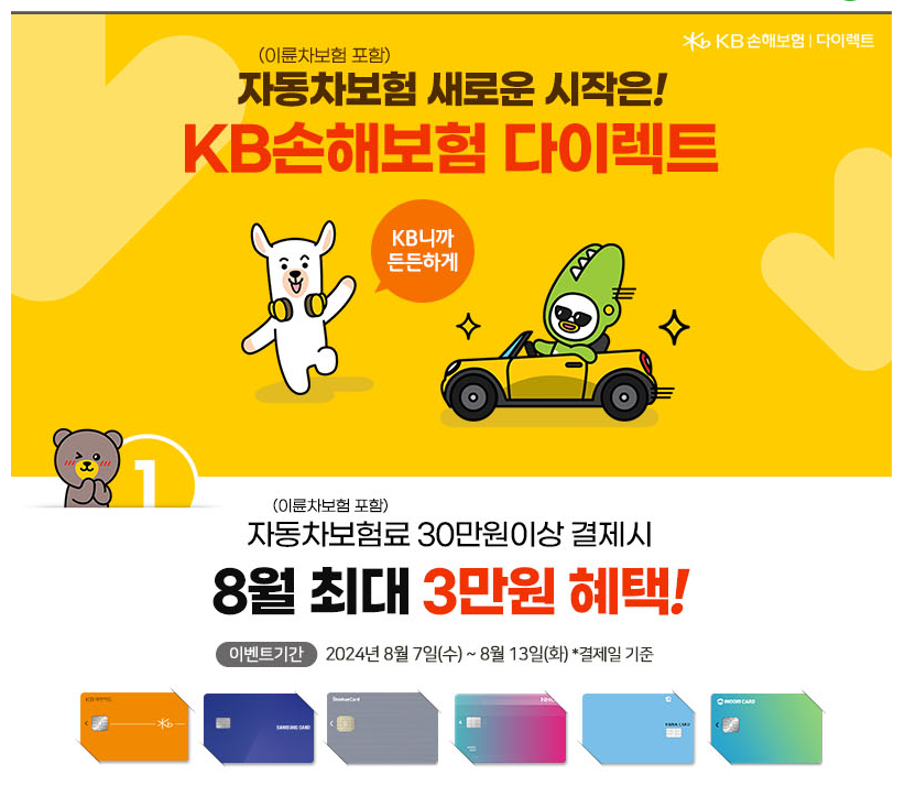 - 이벤트에 참여하려면 KB손해보험 공식 홈페이지 또는 다이렉트 사이트를 통해 보험료를 조회하고, 가입 절차를 진행해야 합니다.