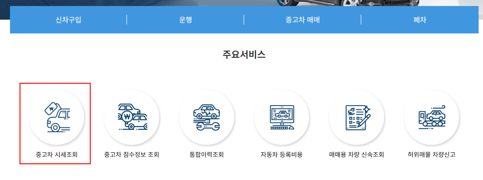 차량가액 조회 메뉴 찾기