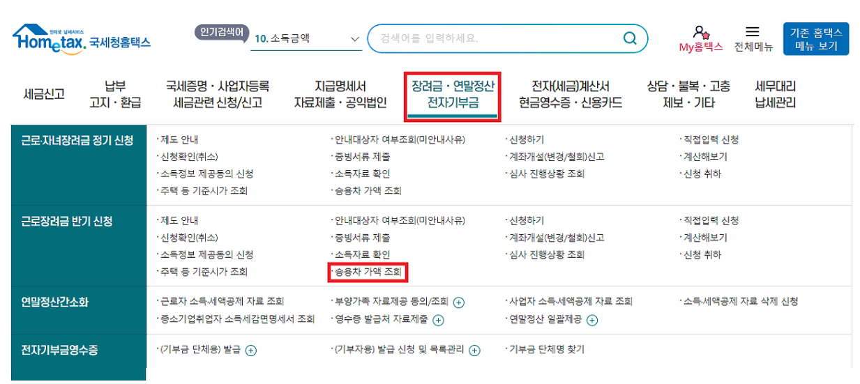 | 홈택스 | 취등록세 납부, 근로장려금 신청 |