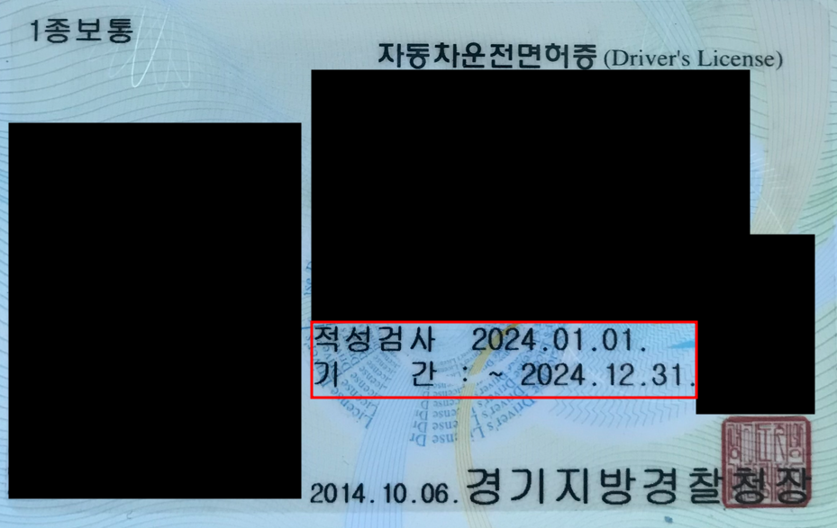 운전면허증 갱신 기간은 운전면허증을 보면 자세히 나와있습니다. 운전면허증 하단에 적성검사 기간이라고 표시가 되어 있는데요. 이 적성검사 기간이 갱신 기간입니다. 따라서 운전면허 갱신 기간은 보통 1년이라고 보시면 됩니다.