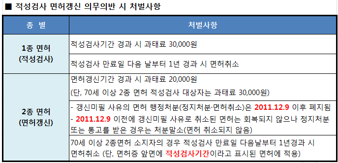 만약 갱신 기간 내에 면허증을 갱신하지 않으면, 과태료가 부과될 수 있으며, 일정 기간이 지나면 면허가 취소될 수도 있는데요.