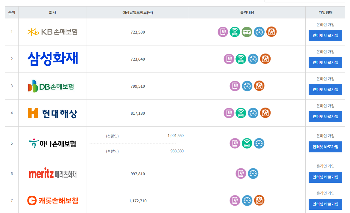 운전자마다, 차량마다 보험료는 다르기 때문에 꼭 직접 해보시는걸 권해드립니다. 또한, 실제 가입은 해당 보험사 홈페이지로 들어가셔서 진행하시면 되겠습니다.