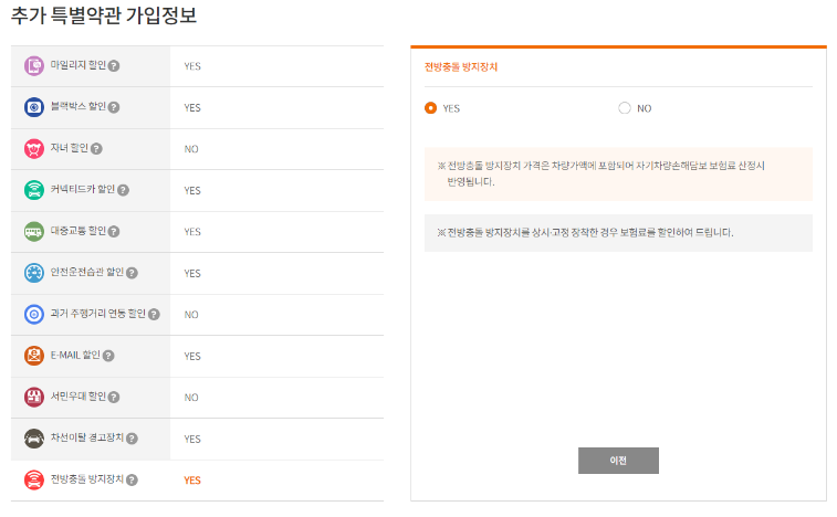 추가 보험료 할인 선택