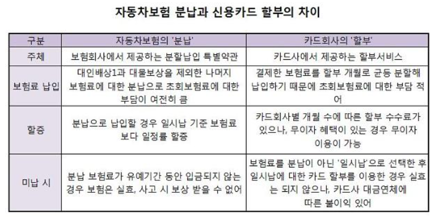 - 신용카드가 없어도 보험사 분납 서비스를 통해 이용 가능