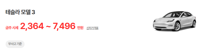 테슬라 모델 3 (20년 ~ 현재) 중고차 시세