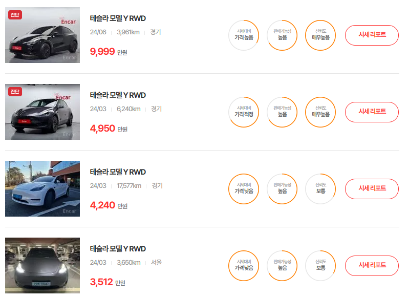 테슬라 모델 Y 중고차 현황
