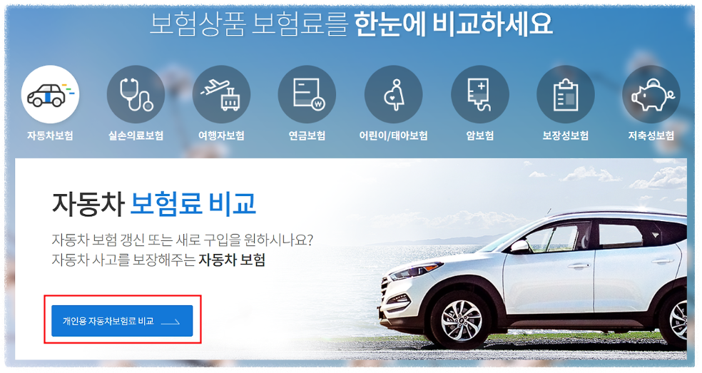 자동차보험 비교 메뉴 선택: